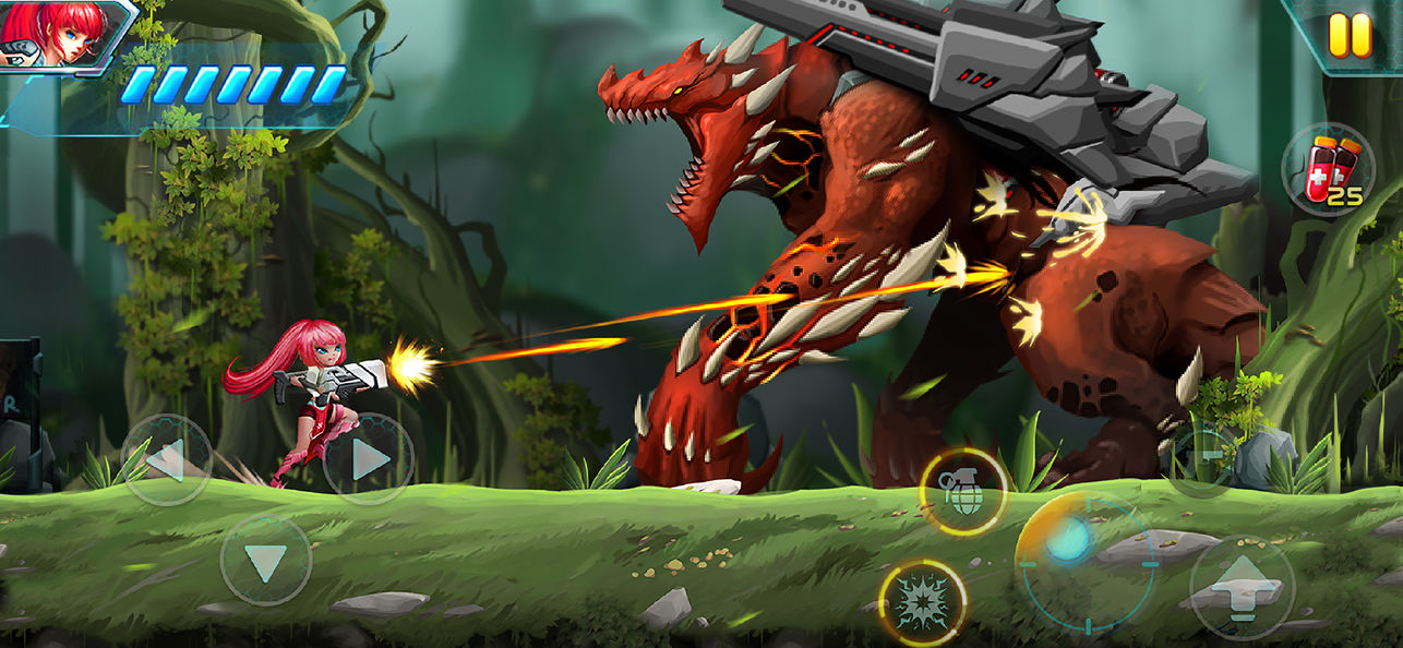 跳跃并在跳跃时用方向键控制移动和开火的方向,而且跳跃时的方向控制在游戏进程中十分重要。