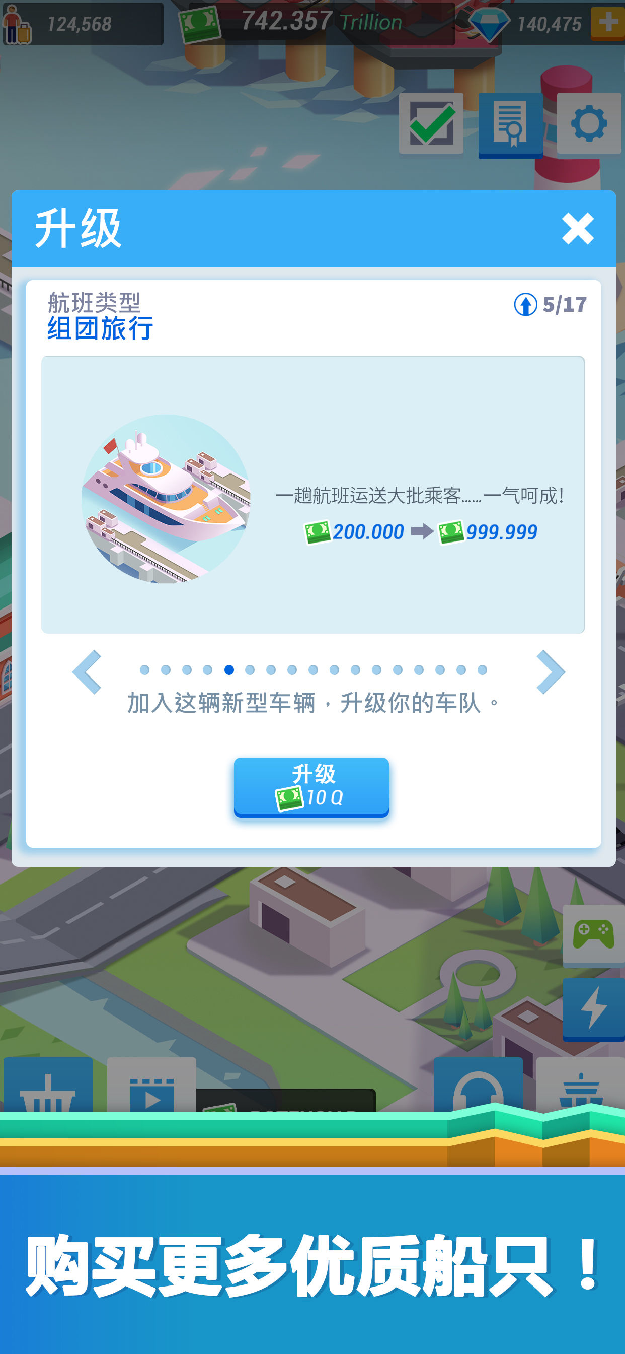 《空闲港湾大亨》这是一款以港口为主题的模拟经营类的手机游戏,你需要建造自己的港口并且进行优化,购买更多船只为游客或者租借给其他进行送货,你可以从中收取租金来获得金钱随着升级你的船只付给你的租金也将越来越贵。