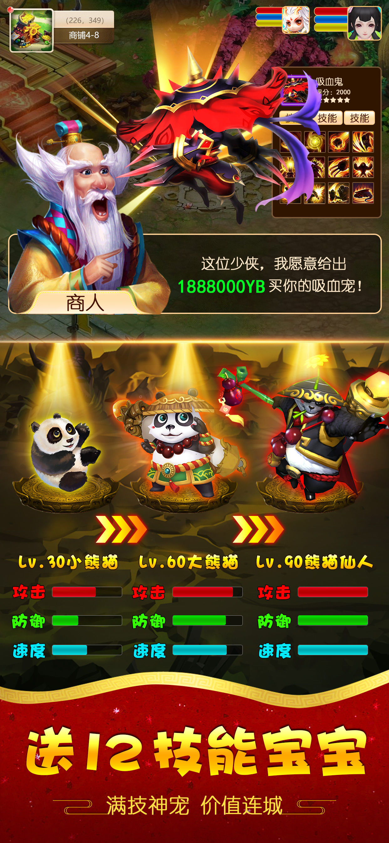 1、以萌系Q版的风格打造,以西游为题材,开创了一个全新的神话传说,神人魔三界混战;