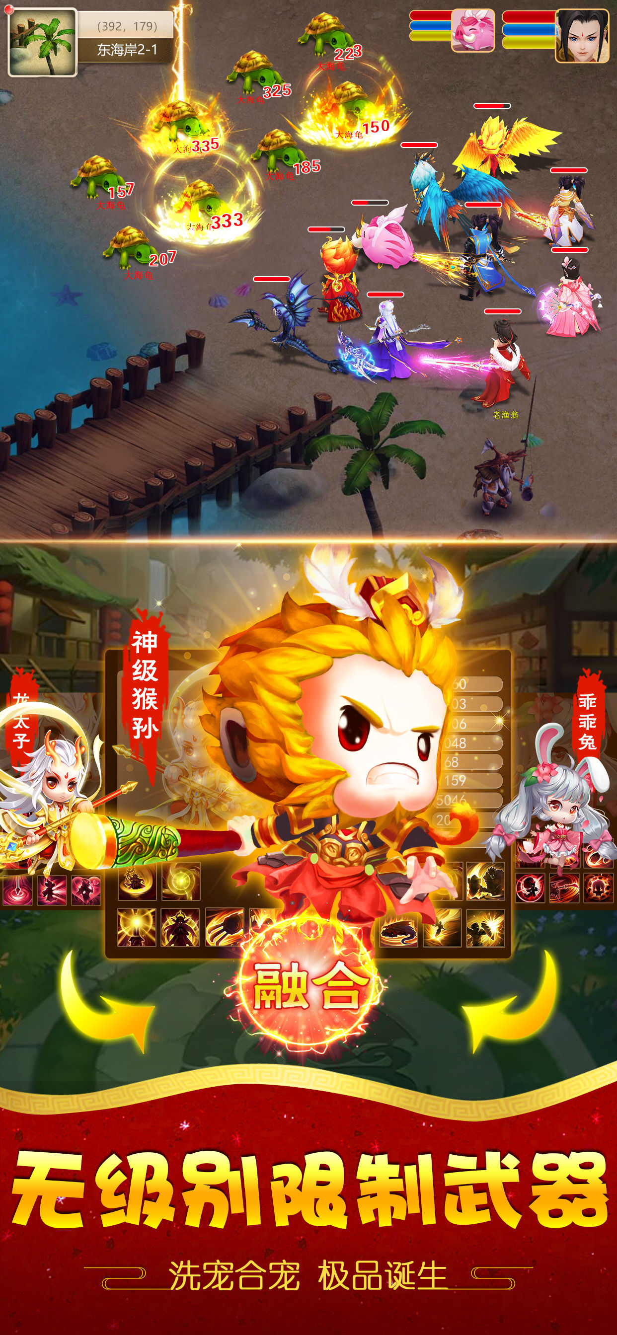 1:数百种不同类型的西游神将等你来招募,每一个神将都拥有不同的战斗实力和战斗水准,