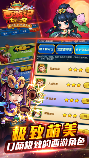 看我72变,带玩家进入庞大的萌幻世界,展开一场Q萌冒险之旅。游戏采用经典西游题材,玩家将穿越到西游世界,组建自己的取经队伍,并带领小伙伴一路降妖除魔!这个夏天Q萌无限!