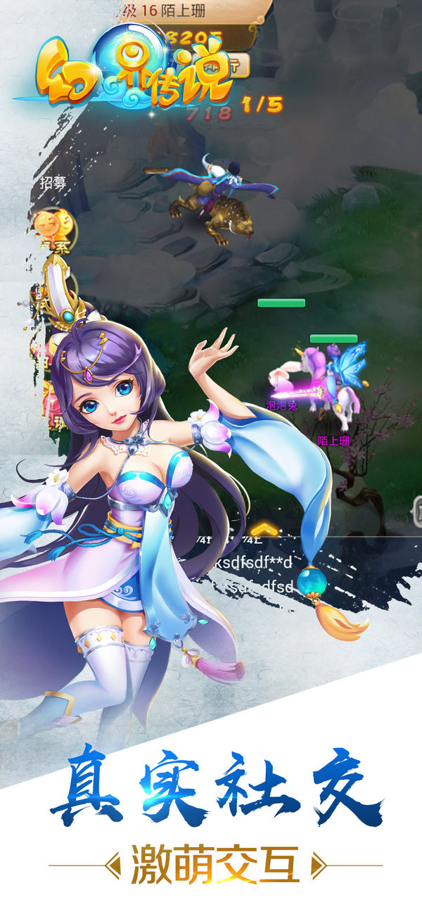 幻界传说,为玩家带来一个全新梦幻、精彩纷呈的奇妙之旅!幻界传说采用Q版画面,可爱的角色,精美的场景,视觉效果出色!游戏中玩家可以灵宠洗成长配技能,打造专属于你的顶级宝宝!