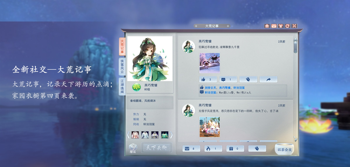 在这次的测试版中,最让小编惊喜的莫过于轻功系统。一般只有在少数端游中才能看见的轻功系统,这次也步入了手游的殿堂。现代手游能够做到轻功系统的少之又少。高贵而又不失优雅的轻功,更如凤毛麟角。而《天下》手游,就是这其中之一。