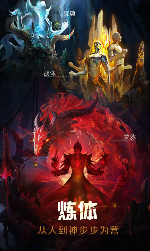 炼体成神 全新养成玩法 血脉,灵魂,战体,气运四大体系进阶淬炼,解锁全新灵魂技能,完成从人到神的终极蜕变!