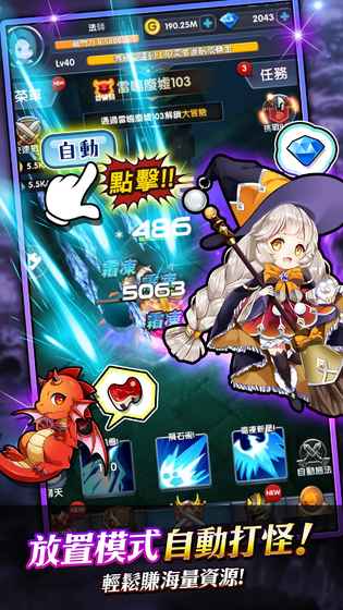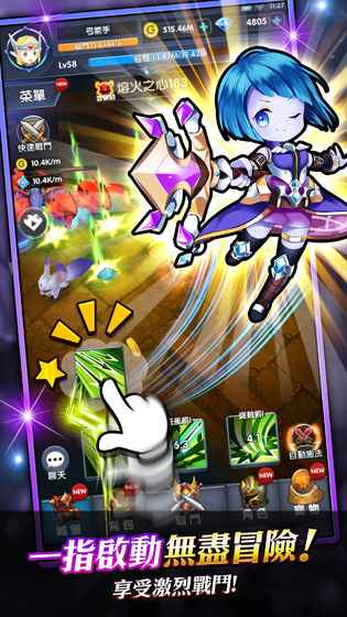 打怪、练功、赚钱、捡装备这些麻烦事,就交给勇者自己来解决!玩家只要指定好勇者需前进的路线,即使离开游戏,战斗仍然不会结束,经验和装备还是滚滚而来!
