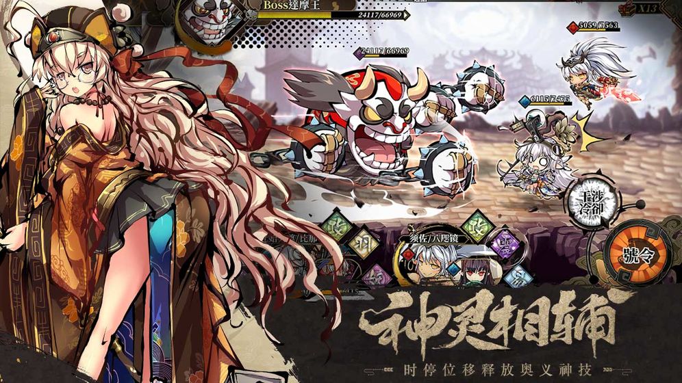 属性相克,神灵相通,自由调整阵容搭配,自由控制队伍站位!共同守护我们的森罗万象界!