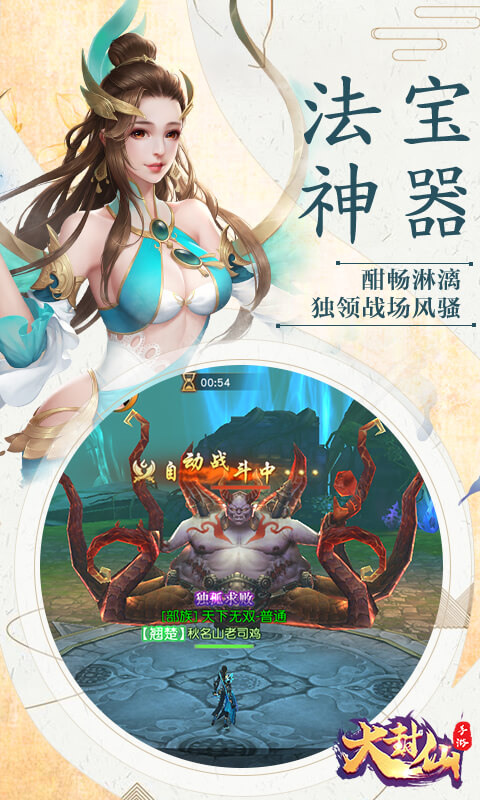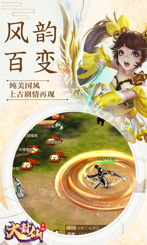 《大封仙》是一款以远古神话著作《山海经》等为背景的大型3DRPG网络手游。在游戏里,你可以扮演夸父、司命、后裔、女娲、伏羲等神话人物游历蛮荒大陆,拯救苍生。