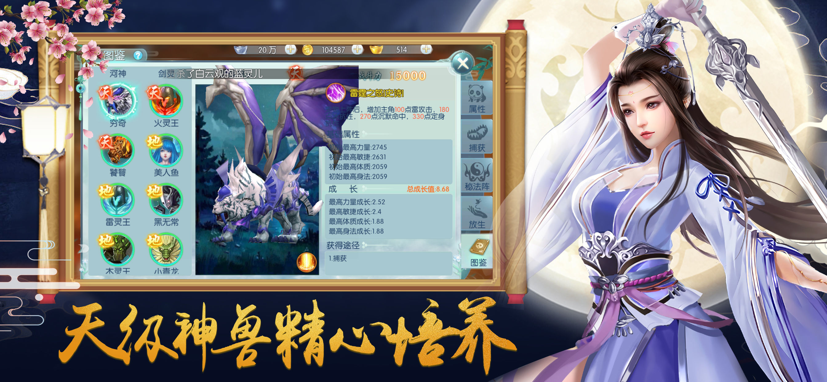 2、人物角色的属性会根据你的道行提高而增加,战力会伴随着等级的提升而暴涨;