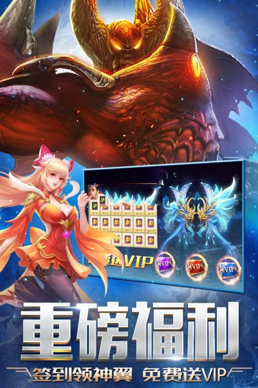 1、每天都有丰富多彩的副本挑战赛随时上演,你要收集不同的秘密武器来提升战力。 2、鼓励玩家进行PK战斗,但也会对PK、公平竞争和自由搏击有一定的保护。 3、大量的重型福利攻击,玩家只需要登录,你就可以得到华丽的神圣之翼。让你的角色更帅气。 4、魅力多姿的魔域故事完美呈现,快携手你的生死盟友一起制霸魔法大陆!