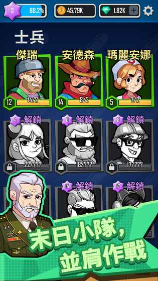 1.僵尸横行的末世世界,如何才能够更好的在这个世界生活下来呢?这是一个十分棘手的问题 2.你需要找寻不同的伙伴,解锁更加丰富的武器,在废墟中寻找生存的资源,并最终完成拯救城市 3.拯救世界的重任。简约的画风,上帝视角的游戏模式,海量关卡场景以及僵尸boss等你去挑战 4.在游戏里面我们的玩家可以尽情的体验战争的魅力,在游戏里面拥有华丽和恢弘大气的游戏打斗设计 5.炫酷的武器和装备。末日降临,如何才能在这危机四伏中生存下来 6.解锁阿兵哥,升级武器,在末日中求生! 完成任务,达成成就,在废墟中寻找资源