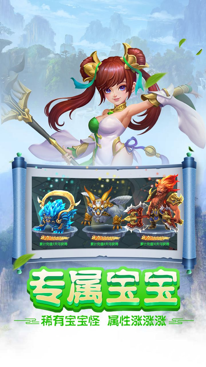 1、角色属性可以自由配置,以创造个人的职业角色; 2、可爱的宠物,Q萌坐骑,天赋技能,炫酷战斗场面; 3、腾云驾雾自由探索,拉风装扮武器,热血战斗体验。
