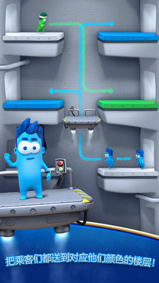 赶快!若不及时送达乘客,他们就会爆炸!失去3名乘客就算游戏结束! 不断登上高塔、解锁新的乘客,每个乘客都有独特的趣味行动! 玩转千奇百怪的电梯,比如番茄酱电梯、洗衣机电梯、火箭电梯和更多! 在游戏中收集金币,升级你的电梯承载量或速度! 拾取物品和游戏内强化能帮您战胜困难关卡!闪电箭、额外生命和颜色转换都是好东西,但记得提防会减慢您速