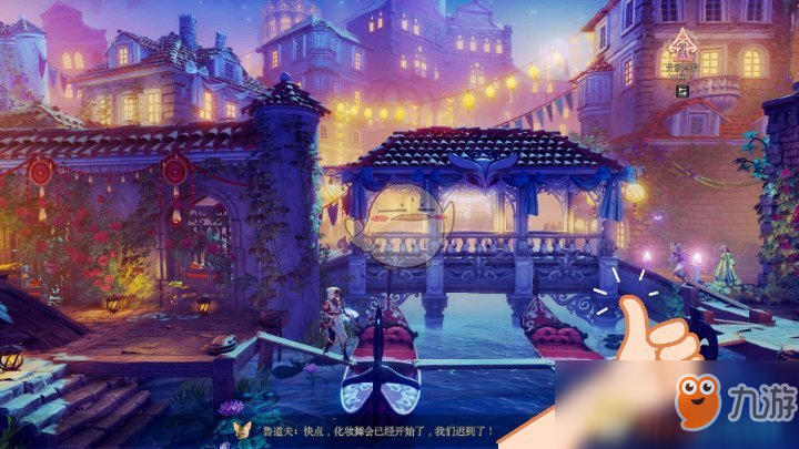 会看到旁边的长廊里经过的猫人和绿裙子小姐姐,讨论舞会要迟到了;