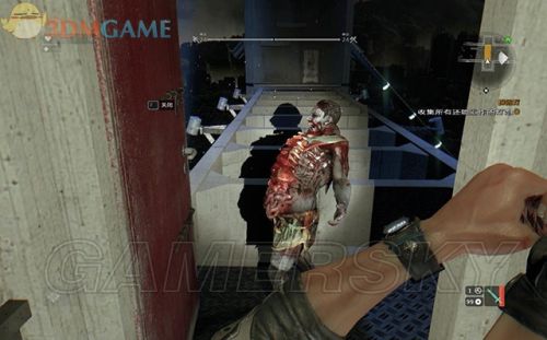 爬到上端找到一道平台,跳上滑索到达对面的桥柱平台。这时几名感染者破门而出,解决掉他们进到桥柱内部。