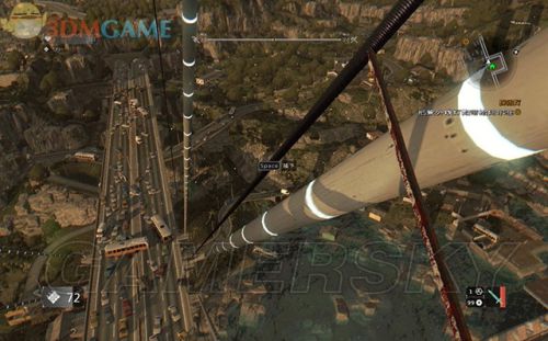 收集完所有的探照灯泡,在横梁平台这里找到一处安全屋,屋外有滑索直接通到桥面。