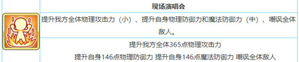 提升我方全体365点物理攻击力,提升自身146点物理防御力,提升自身146点魔法防御力 嘲讽全体敌人。