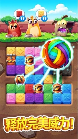 2、你需要不断的挑战,而且整体的可玩性也很高,有趣的卡通消除游戏,各种小动物角色,自由发挥。