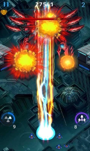 2.游戏节奏紧张刺激,一路惊险不断,火爆华丽的弹幕效果将游戏的精彩程度发挥的淋漓尽致。击退前来阻击的敌人,成功打败boss,那么游戏才会成功获胜!