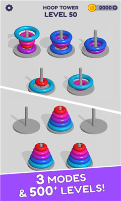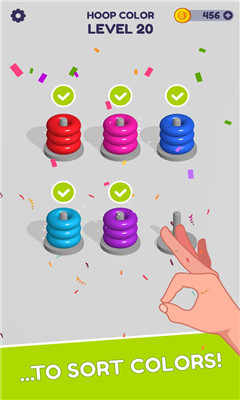 快乐叠圈圈是一款趣味的叠圈闯关的益智游戏,不断的调整圈上的颜色以及位置,里面还能进行关卡的设置,游戏的玩法简单,可在这里进行各种的关卡的选择,随着关卡的递增,难度系数也会随之增加,玩家还能在这里进行经验值的累积,解锁到各种辅助自己闯关成功的道具哦。