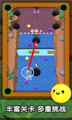 3、巧妙控制小球方向,一杆就把球打进洞里面,让自己的球球走的更远,体验更多场景。