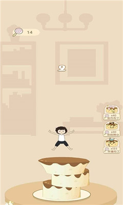 3、欢乐跳一跳,帮助女孩收集喜欢的蛋糕、布丁,可以轻松搭建一千层。