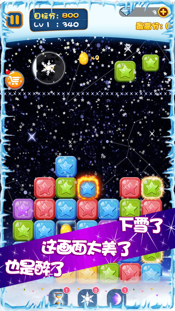 2.不断的消除过程中你需要想办法收集更多的星星,完成关卡的任务完美通关。