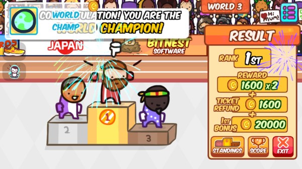 与来自世界各地的运动员竞争,成为最好的运动员,根据不同的比赛项目,它分为多个区域和30多个运动项目,包括田径比赛、射击、自行车、游泳等几十个比赛项目,每场比赛都别具一格,总是充满新鲜感,完成一系列富有挑战性的任务,获得丰厚的奖励,解锁新的角色或时尚。