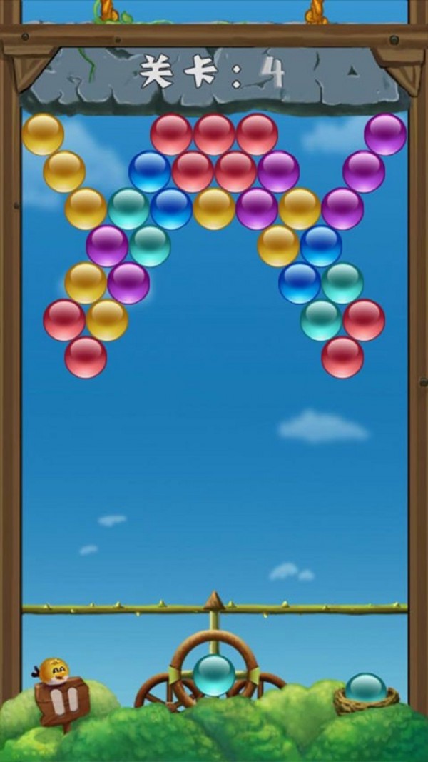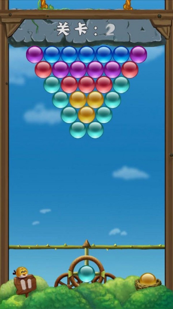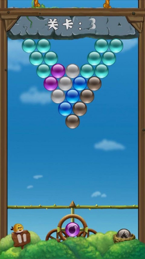 1、玩家根据发射的泡泡消除同色泡泡,一直到最里面的炸弹泡泡,玩家击中炸弹泡泡消除最里面的一行泡泡即可过关