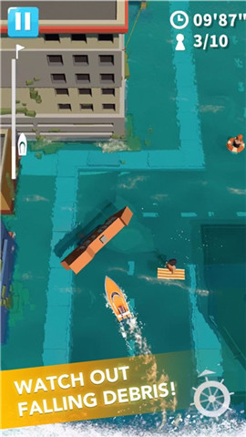 1、游艇救援行动驾驶着游艇在场景的哥哥角落找寻遇难的市民,游戏拯救的人数越多则获取的金币越多。