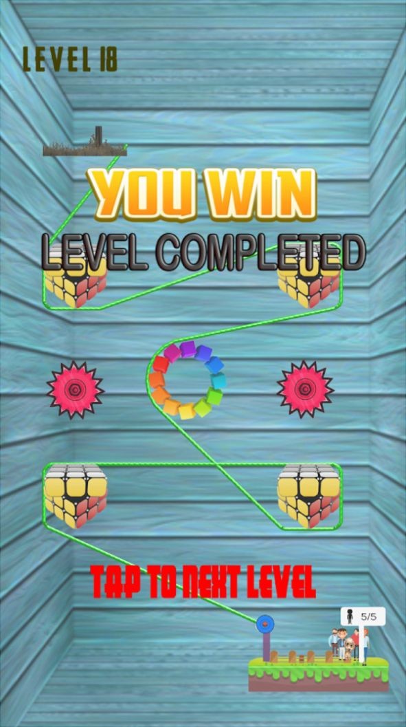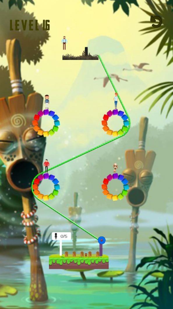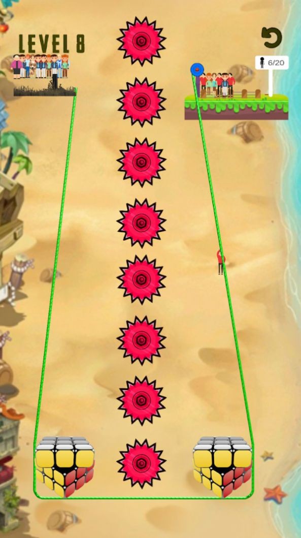 2、玩家只需要使用不同的绳子来帮助他们顺利拯救更多的小人。