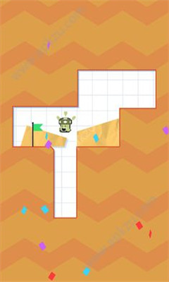 1、玩家只能有一次操作切割纸条,被切割的纸条会落下,下面的纸片宝宝想要成功到达目的地就必须用纸条去填满关卡的坑。