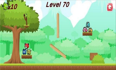 游戏在很多方面和愤怒的小鸟几乎一模一样,纯单机,无广告,熟悉的玩法,全新的体验,你需要用弹弓发射小鸟去撞击可恶的小猪,给它们点颜色尝尝,快来试试吧。