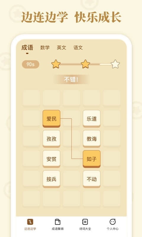 欢乐连连通是一款休闲益智手机游戏,您可以在游戏中了解更多关于成语的信息,这个小游戏的玩法非常经典且有趣,但是我们在这里需要连接的是将两个单词连接成一个单词。完整的习语,非常能测试玩家的习语内容。游戏中有许多关卡,等待所有人开始挑战。