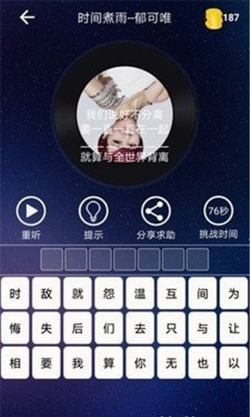 2,播放器需要在指定的时间内完成操作,快速解答,美妙的歌曲猜测解答具有一定的节奏,您可以随时用音乐回答它们;