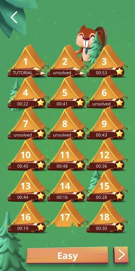 2,游戏非常有趣,玩法非常简单,风格新颖而简洁,真正的帐篷和树拼图是经典的逻辑拼图。
