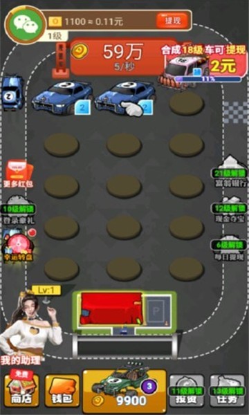 豪车收藏家游戏您可以通过连续合成来升级您的汽车,达到一定水平后,您将获得红包奖励,简单指尖即可获得很多红色信封,您每天可以执行不同的任务完整,您需要探索许多不同的功能,并且还有一些登录礼物,快来体验休闲综合游戏并获得很多好处。