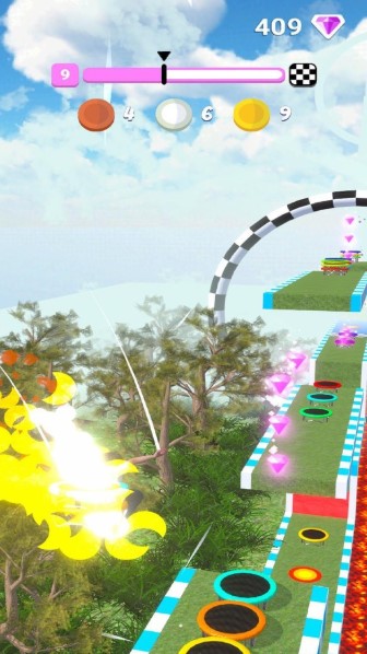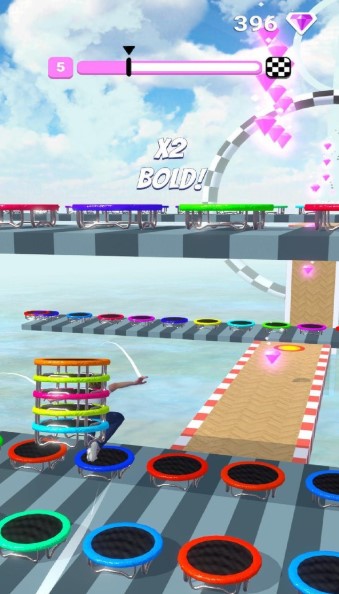 1,游戏轨道上有许多充气床,玩家可以在其中弹跳并玩乐。