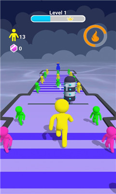 一款在赛道上不断战斗打败所有人的游戏,相信只要你有这个心,你就始终会得到自己想要的结果,掌握奔跑的节奏,加上一定的策略,你只需要躲避障碍,并且对于不同颜色的小人快速的出击,争取在最短的时间来击败更多的人,保存自己生存到最后就可以了。