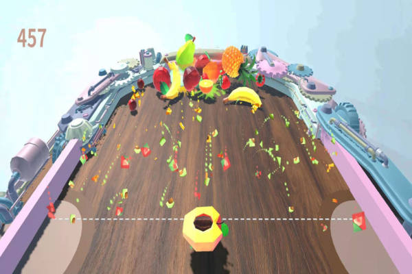 2.通过物理推力将水果推出,通过相互碰撞实现水果之间的爆炸效果;