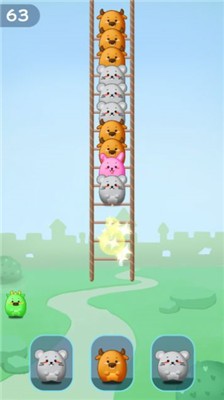 3、为你带来的消除玩法可谓是别具一格,游戏开局有许多不同种类的小动物被排列在楼梯上。
